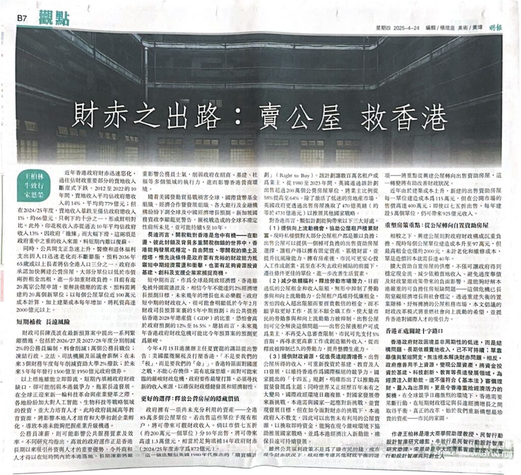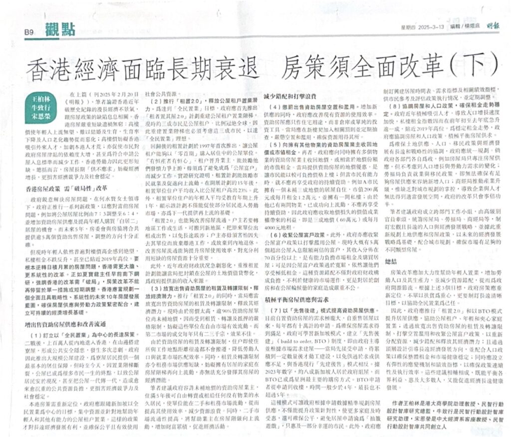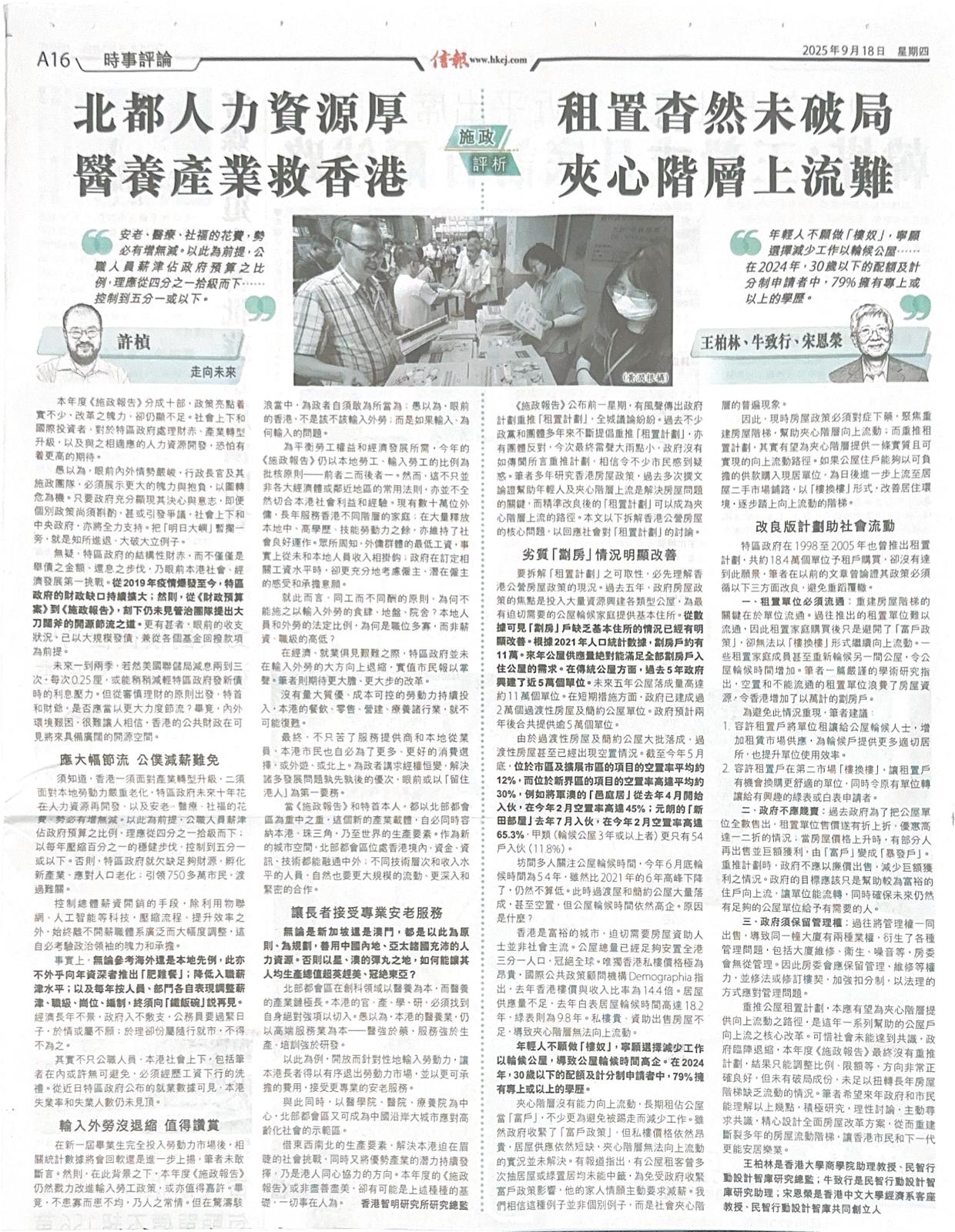 - 施政報告2025 扶助置業方向正確 可惜力度不足 by Michael Wong, Alex Ngau, Yun-wing Sung