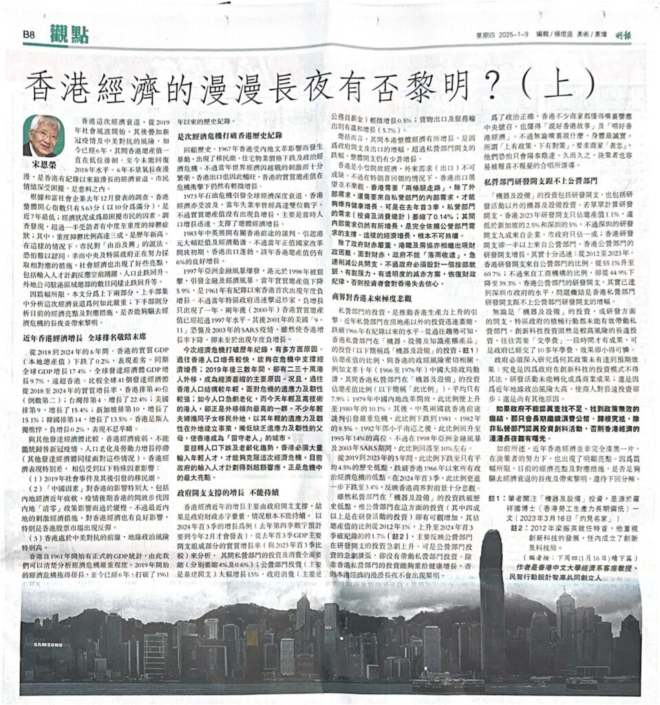 - 香港經濟面臨長期衰退 房策須全面改革 (下) by Michael Wong, Alex Ngau, Yun-wing Sung