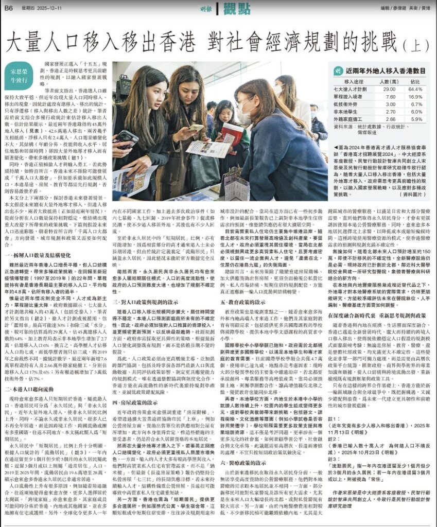 - 大量人口移入移出香港 對社會經濟規劃的挑戰(上)by Yun-wing Sung, Alex Ngau